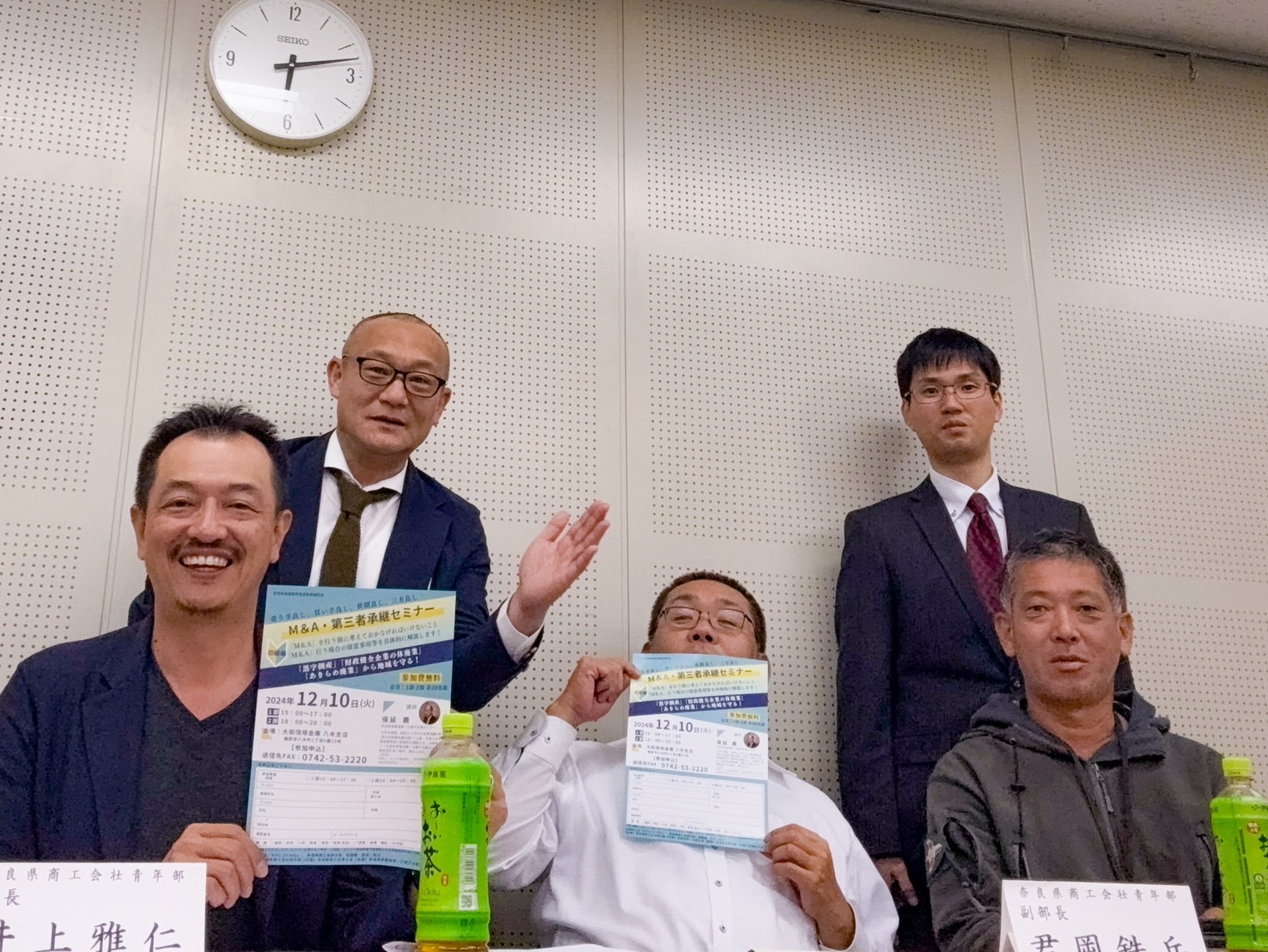 全て 2025年 2024年 活動報告 2025.10.07 大阪・関西万博視察研修開催 大阪・関西万博視察研修を開催しました。当日は晴天に恵まれ、団体予約をしたパビリオン(日本館)も見学することができ、非常に有意義な研修となりました。 活動報告 2025.09.10 事業者向け補助金活用セミナー開催 事業者向け補助金活用セミナーを開催しました。壮青年部員だけではなく青年部員、商工会職員など多数の方にご参加いただき、補助金に対する理解を深めることができました。 活動報告 2025.08.27 令和7年度 第4回 理事会開催 令和7年度奈良県商工会壮青年部第4回理事会を開催しました。内容は奈良県商工会壮青年部ホームページや大阪・関西万博視察研修、補助金活用セミナー等についてです。 活動報告 2025.07.14 令和7年度 第3回 理事会開催 令和7年度奈良県商工会壮青年部第3回理事会を開催しました。主な議題は大阪・関西万博視察研修、事業者向け補助金活用セミナー、壮青年部実態調査等です。 活動報告 2025.06.17 令和7年度 第2回 理事会開催 令和7年度奈良県商工会壮青年部第2回理事会を開催しました。新役員が令和7年度事業について話し合いを行い、事業方針や事業詳細が決定しました。 活動報告 2025.05.19 令和7年度 奈良県商工会壮青年部総会 開催 令和7年度奈良県商工会壮青年部総会を開催しました。令和7年度は奈良県商工会青年部連合会との連携強化に力を入れて取組み、経営実務に関するセミナーの開催も予定しています。 活動報告 2025.02.07 M&A・第三者承継セミナー 開催 ㈱バトンズの則竹愛様をお招きし、奈良県商工会壮青年部ネクストステージ委員会主催のM&A・第三者承継セミナーを開催いたしました。(内容)・「M&A」プラットフォームを活用し、M&A・事業承継に成功する秘訣について 活動報告 2024.12.10 交流懇親会 奈良県商工会壮青年部交流委員会主催の交流懇親会を開催しました。部員同士の交流を深めることができました。 活動報告 2024.12.10 M&A・第三者承継セミナー 開催 奈良県事業承継・引継ぎ支援センターの保延薦様をお招きし、奈良県商工会壮青年部ネクストステージ委員会主催のM&A・第三者承継セミナーを開催いたしました。(内容)・「M&A」を行う前に考えておかなければならないこと・「M&A」を行う場合の留意事項について 活動報告 2024.11.11 第3回理事会 壮青年部で作成するホームページ、ネクストステージ委員会主催のM&A第三者承継セミナー、交流委員会主催の交流懇親会の三点を主な議題として話し合いを行いました。 活動報告 2024.07.22 視察研修 令和6年7月21日(日)~22日(月)にかけてネクストステージ委員会主催のM&A・事業承継の視察研修を東京で行いました。